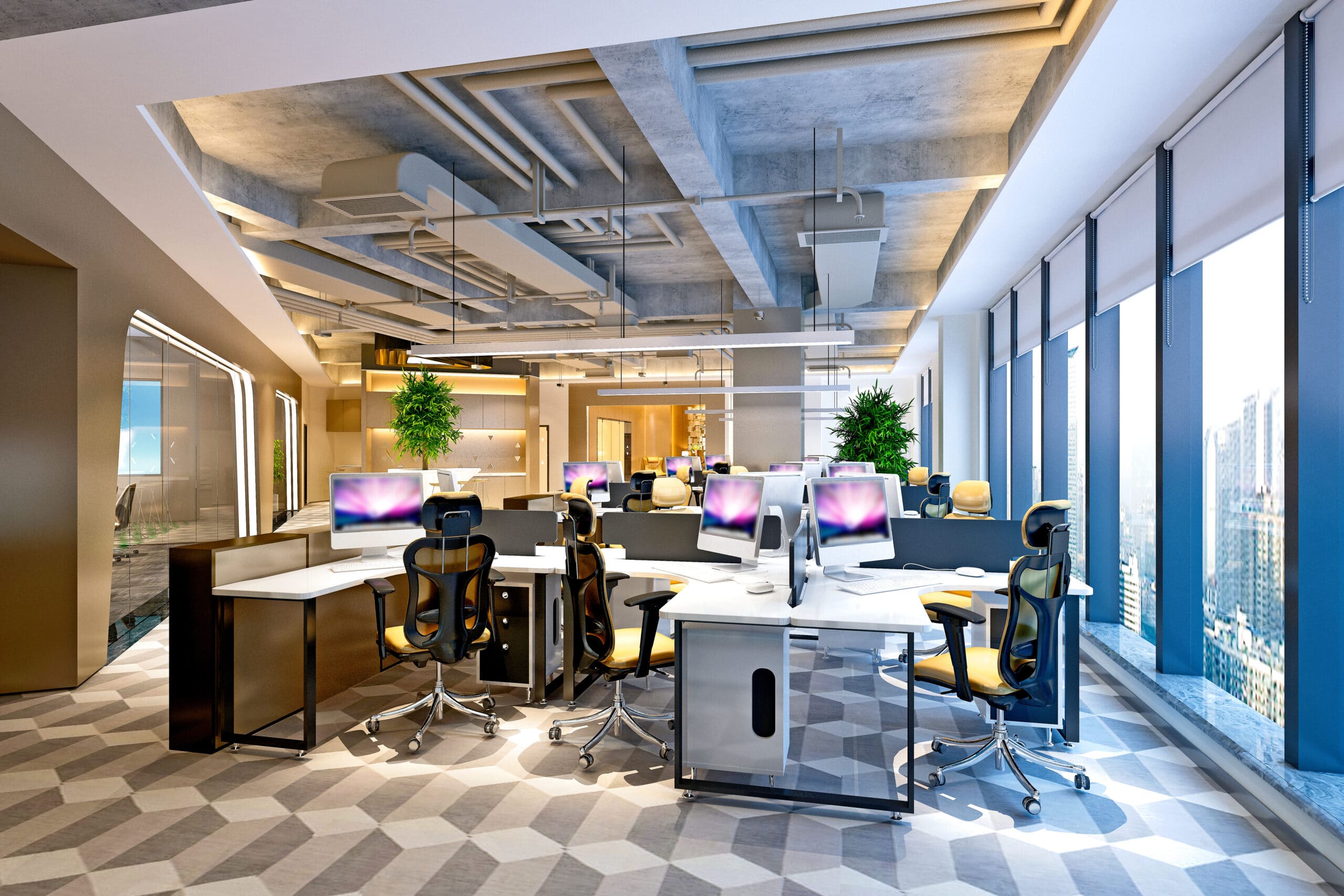 Future smart offices are cutting-edge designs that explore new, modern office workstation layouts. Concepts like open collaboration, zones, individual privacy, hybrid workspace, cubicle offices, and mixed seating promote production, teamwork, communal office culture, and overall well-being. Think smart; make your new office space one that provides the boost your employees need.