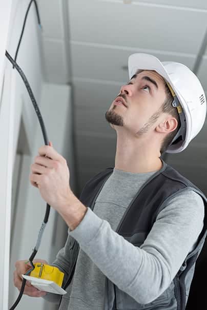 As with data cables, electrical cables must be dropped from the ceiling or fed through the floor or wall. If furnishings have power poles that extend from the furniture to the ceiling (these are most commonly encountered with cubicles), this power pole must have internal separation and shielding to carry both data and electrical cables.